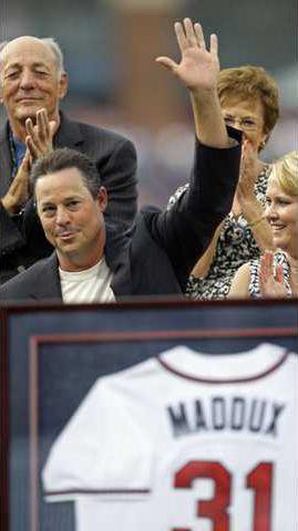The 43-year-old Maddux was inducted into the Braves Hall of Fame at a luncheon attended by about 900 fans. He had his No. 31 retired Friday night before the Braves played the New York Mets.