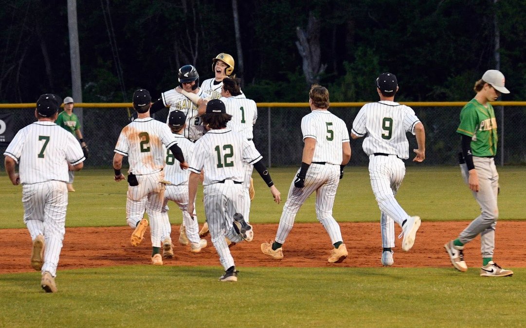 The Gators found themselves down 2-1 in the bottom of the seventh after Pinewood took a one-run lead on a sacrifice fly from Booth, who also drove in the Patriots only other run with a double in the fifth. The Gators were able to get an RBI single by Austin Smith to tie the game as Parker Chance slid home just in front of the tag. Lee then came through with the game winner moments later.