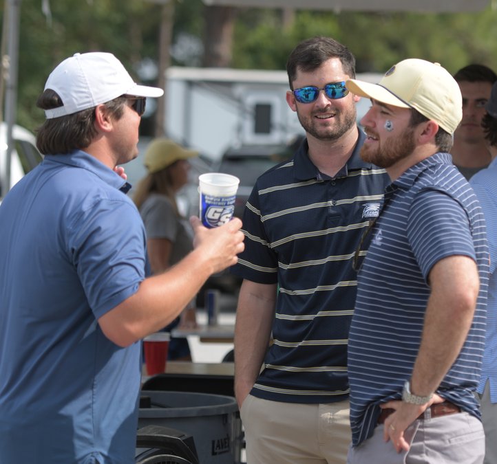 While waiting out the weather delay during the Notre Dame vs. Texas Tech game many Georgia Southern fans and alumni gathered together at a tailgate in front of Hanner Fieldhouse.