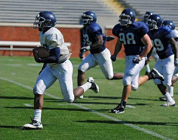 "It’s different," said defensive lineman John Douglas about practicing against the shotgun. "We’re used to going against our offense all the time. With them helping us, giving us that look, it’s good. We need those reps because we play those teams like Elon that run the spread. It’s good, and it will help us out a lot next year."