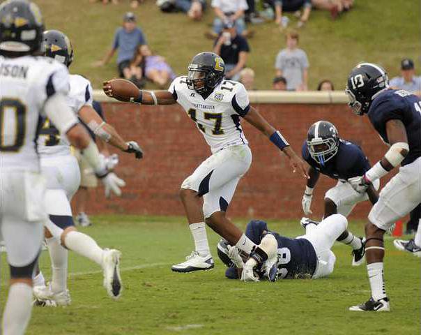 After starting quarterback B.J. Coleman left the game with an injury, then-freshman Terrell Robinson came in for his first college snaps and did all the damage with his feet, rushing for 114 yards and three touchdowns. He was a two-point conversion short of leading the Mocs from behind in Georgia Southern’s 28-27 win.