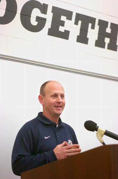 Georgia Southern head coach Chris Hatcher speaks about his 2007 signing class at a press conference on Wednesday. Ten short days was all the time he had to put together his first Eagle recruiting class, but first-year Georgia Southern football coach Chris Hatcher signed a group he felt pretty good about on Wednesday, National Signing Day.