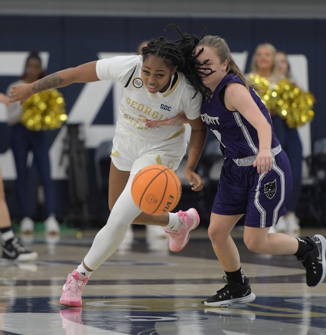The Georgia Southern Lady Eagles may not have been playing a person named Agnes Scott, but it wasn’t far from that as the Scotties only dressed out seven players while the Eagles actually had twice as many players score Wednesday night as Georgia Southern improved to 5-1 on the season with a lopsided 126-35 victory.