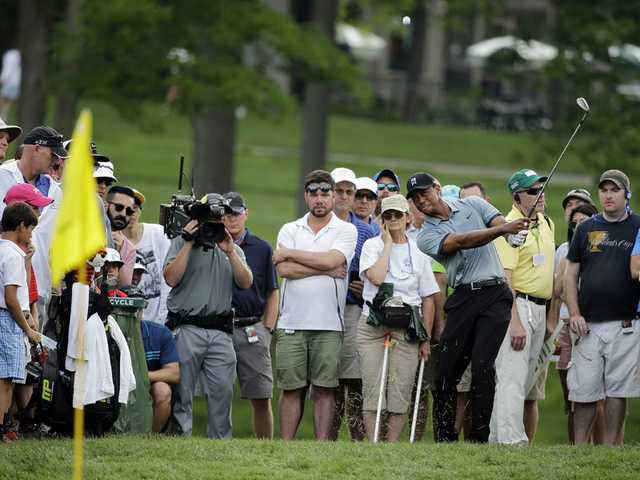 Woods, meanwhile, opened with three birdies in four holes, though he was still wild off the tee. He mixed bogeys with birdies and was in reasonable shape at 3 under for the tournament until he missed the 16th green long and made bogey, and then found a deep patch of rough just off the left side of the fairway at the 17th, had to lay up and could get no closer than 30 feet from 100 yards. That bogey put him on the cut line, and he popped up his 3-wood off the 18th tee into rough.