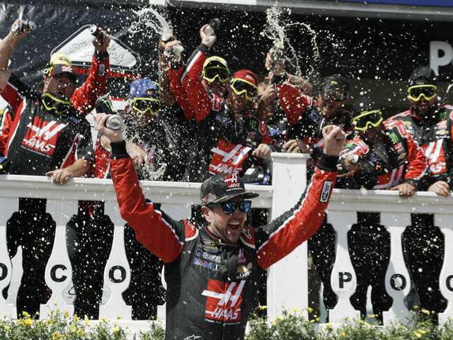 With an interim crew chief calling the shots, Busch found enough ways to make his gas last and won the Sprint Cup race Monday, his first victory of the season and a welcome dose of good news for Stewart-Haas Racing.