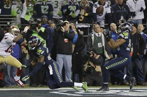 San Francisco (14-5) led 17-13 when Wilson, given a free play as Aldon Smith jumped offside, hurled the ball to Jermaine Kearse, who made a leaping catch in the end zone.