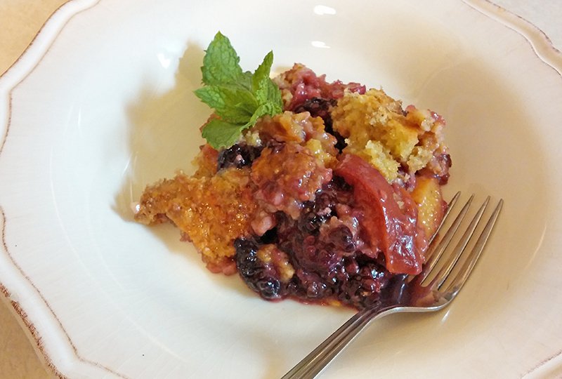 Peach-Berry Crumble — Crumbles make the perfect summer dessert. Simple to throw together, they’re special enough for entertaining yet quick enough for a post-dinner weeknight treat. The end result of this Peach-Berry Crumble is a crunchy, buttery topping filled with warm, sweet fruit. Serve with cold vanilla ice cream or sweetened whipped cream. Garnish with fresh mint.