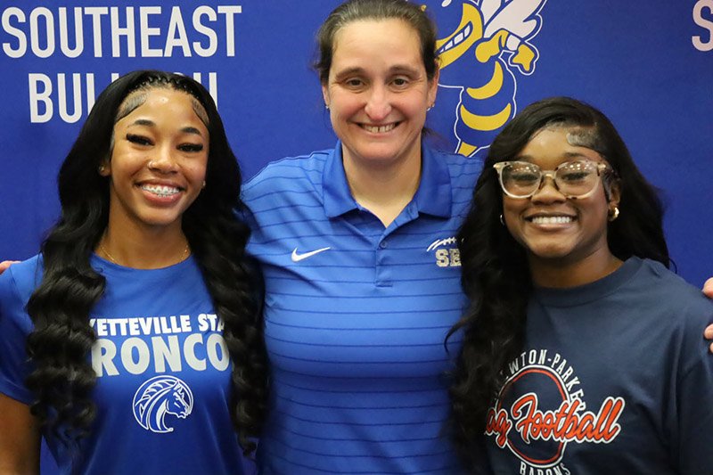 Southeast Bulloch flag football players Kristiana Tisby and Kelsey Johnson signed official letters of intent recently to play in college,