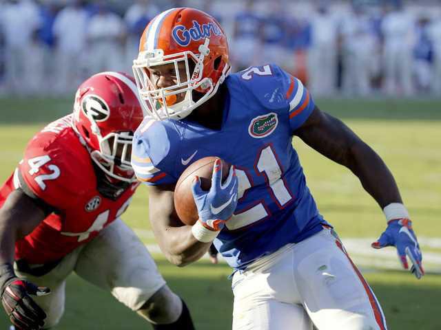 Florida put the game away midway through the fourth, thanks to Jordan Scarlett's 60-yard scamper and Taylor's 16-yard score. Taylor put an ankle-breaking move on cornerback Malkom Parrish before finding the end zone for the 10th time this season.