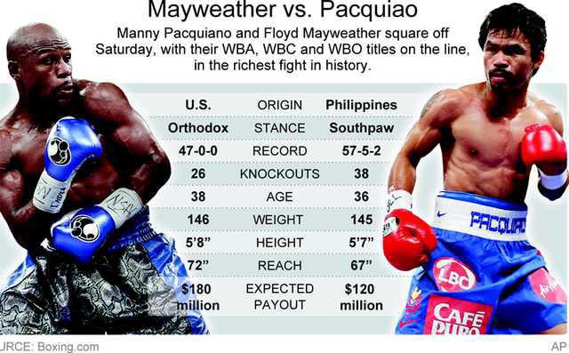 The fight is for the welterweight championship of the world, but in reality it's much more.Mayweather will be risking his legacy against arguably the best opponent of his career, while Pacquiao will carry the weight of an entire nation into the ring at the MGM Grand arena.