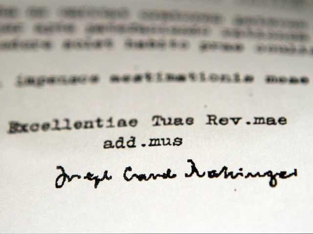 While papers obtained by the AP include only one letter with Ratzinger's signature, correspondence and internal memos from the diocese refer to a letter dated Nov. 17, 1981, from the then-cardinal to the bishop. Ratzinger was appointed to head the Vatican's Congregation for the Doctrine of the Faith a week later.