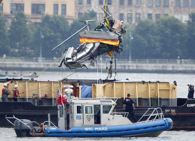 Of the six bodies in the helicopter, divers recovered two on Saturday morning and two more that afternoon. Two were trapped in the wreckage and could be extricated only once it was hoisted on a pier in Hoboken, Browne said.